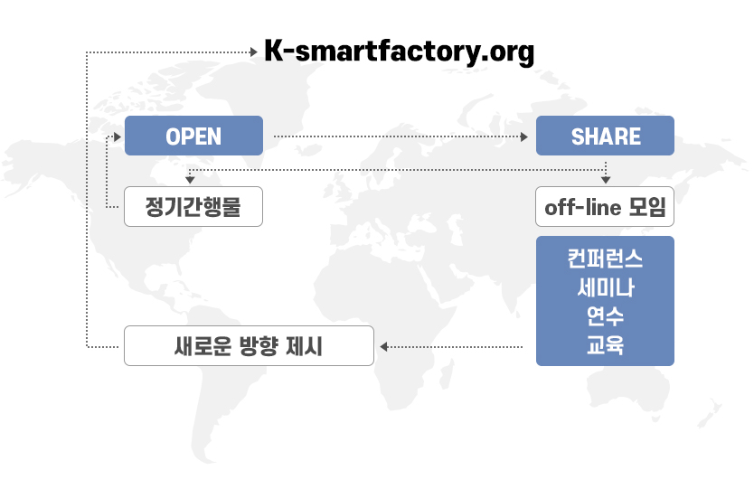 k-smartfactory는 스마트공장의 핵심인 첨단기술과 구축 전략 및 사례, 정부정책방향에 대한 조사 연구와 활용 방안을